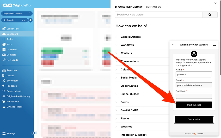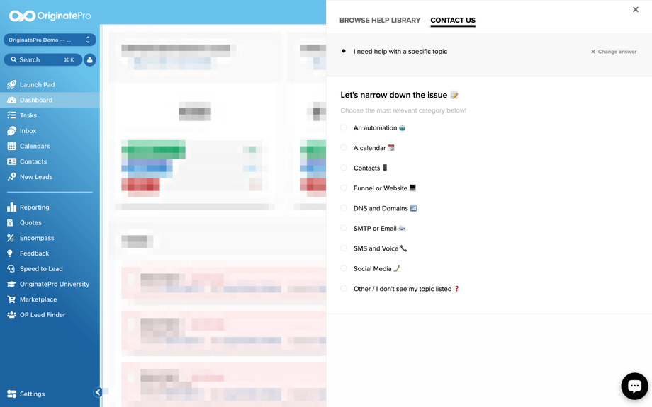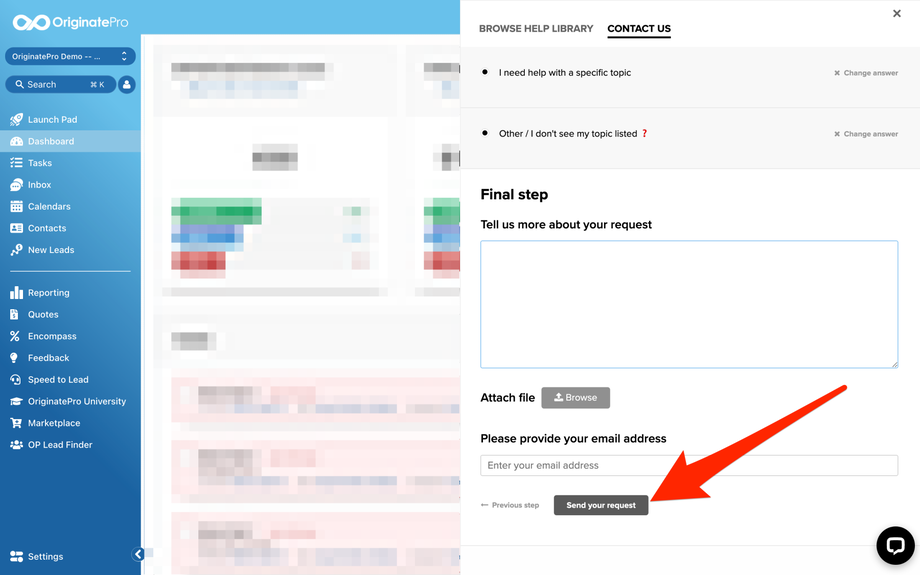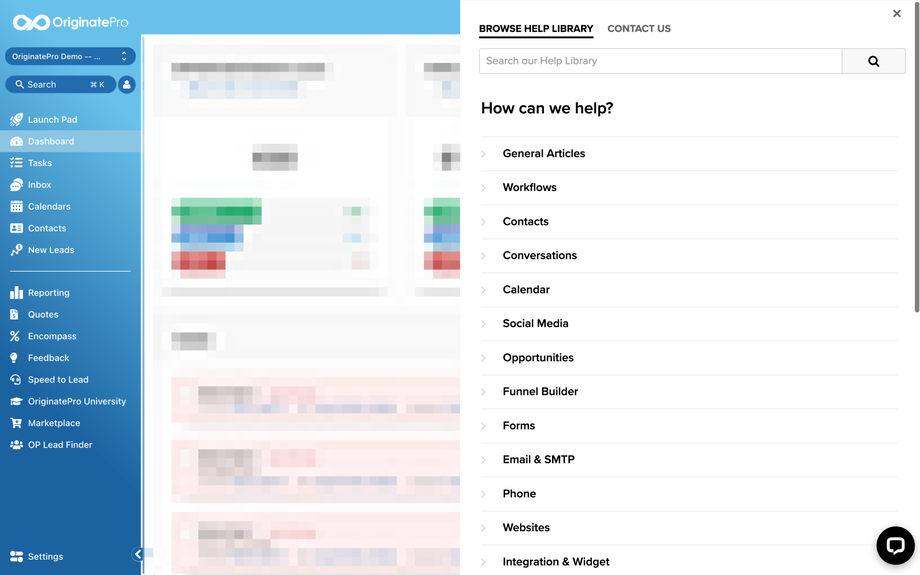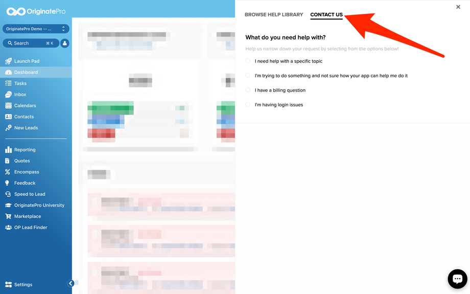 In this article, we'll show you how to access the Help Center from your OriginatePro account and reach out to support within the Help Center.