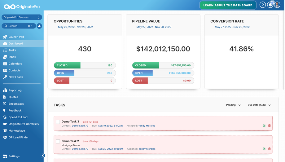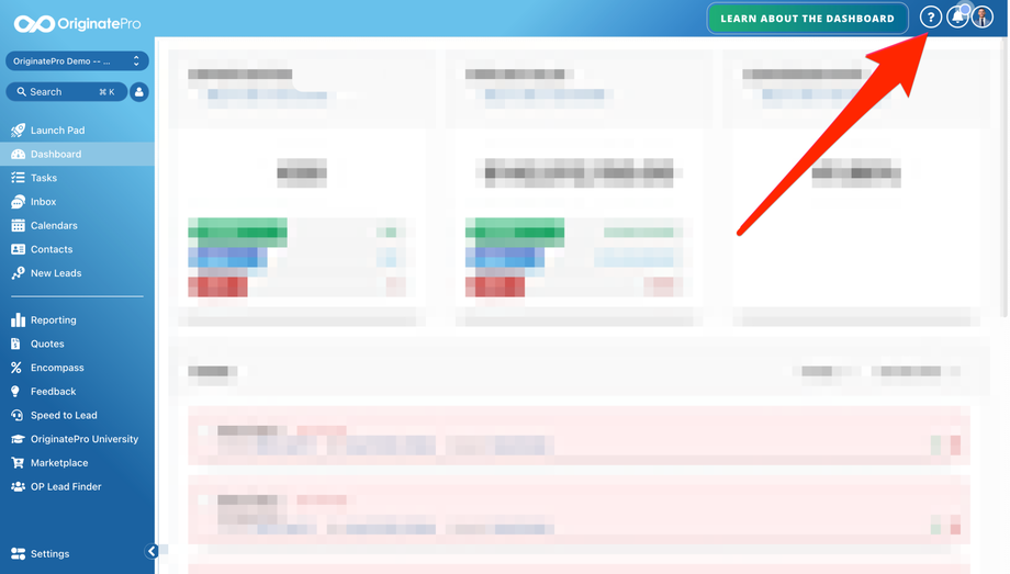 Once you login to your OriginatePro account, you'll be taken to the Dashboard.